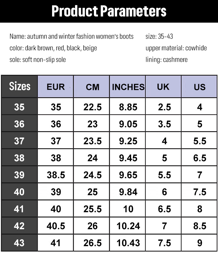 Combat -30°C cold with these elegant Australian calfskin boots featuring 100% cashmere lining. Waterproof, durable, and ultra-comfortable with ergonomic arch support and a 5cm anti-slip sole. Enjoy all-day style. Manufacturer direct sale: 50% off plus a 14-day risk-free trial