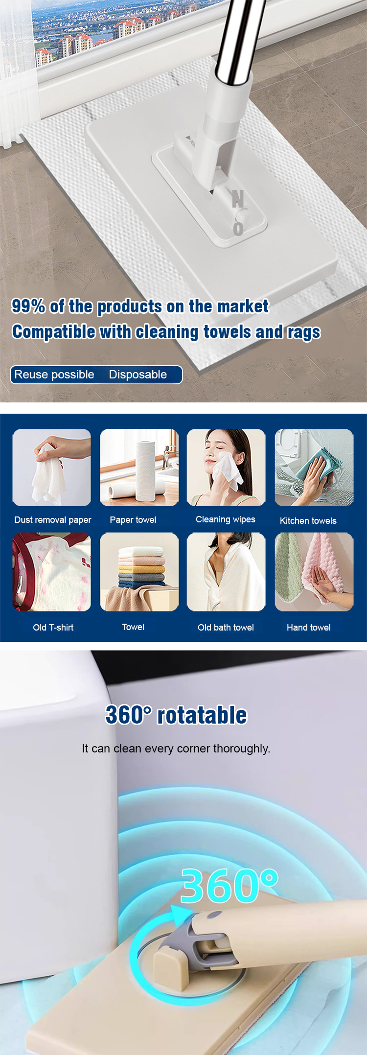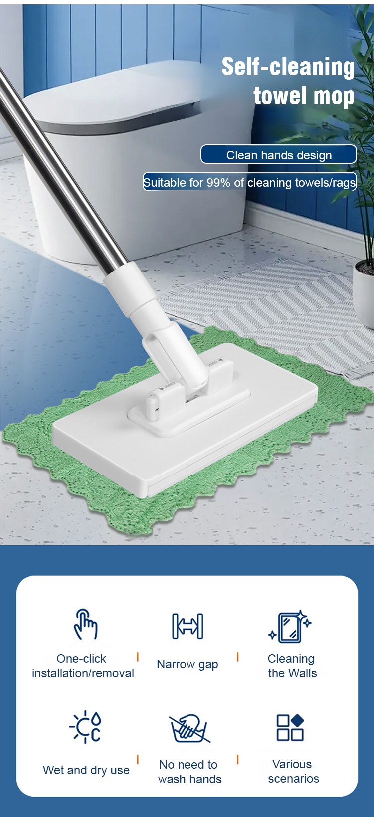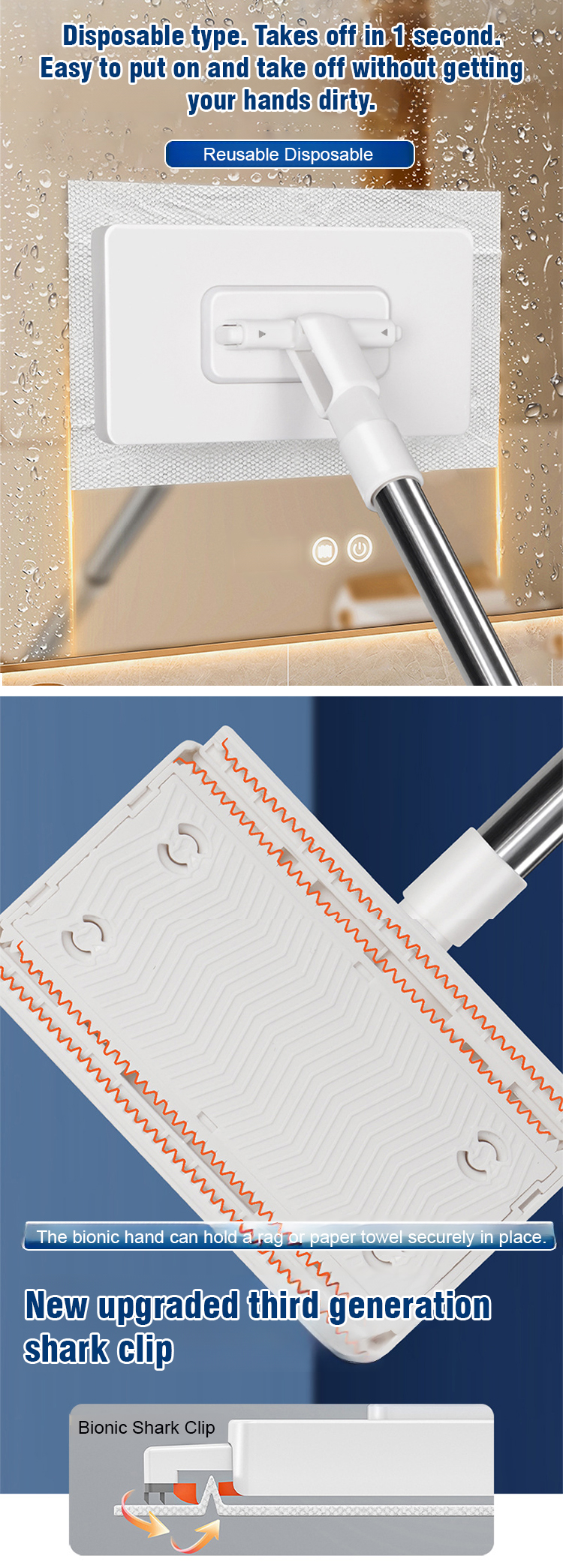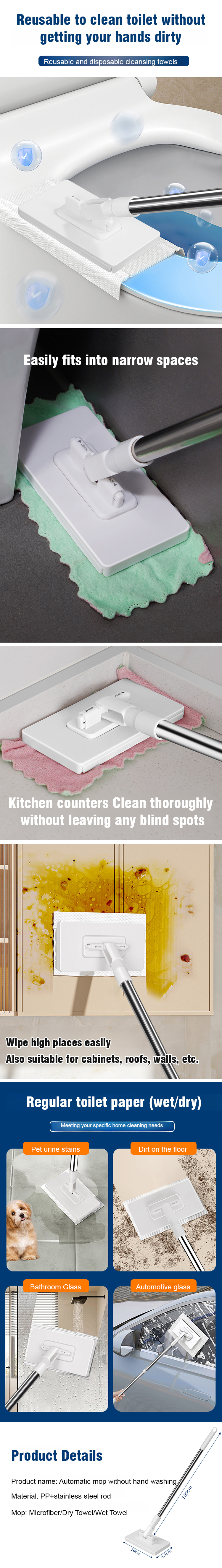 Revolutionize cleaning! Use old clothes or wipes as pads—no bucket needed. Reach corners easily; release dirty pads with one click. Streak-free and effortless. Get 50% off now, plus a 2-year warranty and14-day risk-free trial